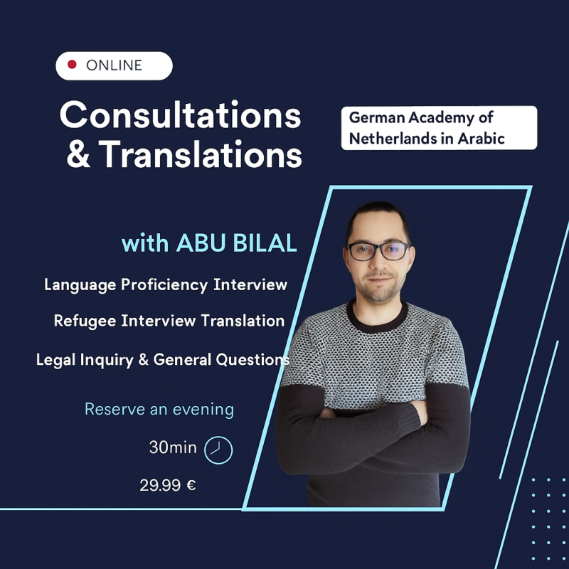 The “Consulting and Translation with Abu Bilal” department is a specialized department that provides high-quality consulting and translation services for anyone seeking to learn Dutch or needing language support in other areas. This department gives you the opportunity to conduct a language placement interview, where we assess your current Dutch language skills and provide professional advice on the most suitable course for you. Based on the assessment results, we will guide you to the appropriate level, whether it is Level 1, 2, or 3, to ensure you achieve the best possible progress in your learning.